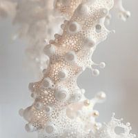 Bleached Biospheres is een AI-gegenereerd kunstwerk in lichte tinten dat de grens tussen microscopische werelden en kosmische oneindigheid verkent. De dromerige abstractie laat zien hoe celstructuren en sterrenstelsels elkaar ontmoeten.