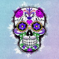 Heldere kleurrijke suiker schedel in waterverf. Levendig cool ontwerp voor Halloween, Allerzielen en Dag der Doden.