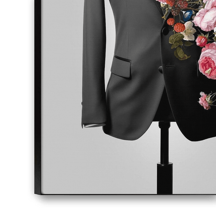 De kleermaker heeft er een bijzondere creatie van gemaakt, door aan het colbertjasje bloemen, insecten en vlinders toe te voegen.