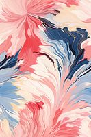 Abstract digitaal schilderij met vloeiende lijnen in een marmer inkt structuur. Warme en koude kleuren gecombineerd, rood en blauw.