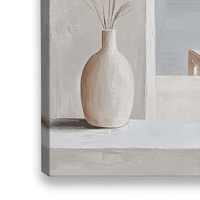 In dit kunstwerk wordt een zomers uitzicht tot leven gebracht in een mix van neutrale kleuren en tinten, die prachtig samensmelten en de zomerse sfeer oproepen.