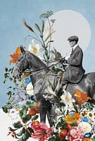 Samen vormen de afbeeldingen een vrolijk, zomers en ietwat onwaarschijnlijk portret van een ruiter in een bloemrijk landschap.