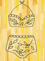 Een kunstwerk dat de essentie van de zomer vangt in een minimalistische, bijna speelse stijl. Het stuk straalt een warme, ongedwongen sfeer uit door zijn zachte kleurenpalet en eenvoudige lijnvoering. Het beeld van het tweedelige badpak, iconisch voor lange dagen aan het strand en onbezorgde momenten onder de zon, is uitgevoerd in…