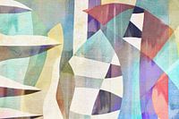 Kleurrijk modern abstract op grof canvas doek. Mixed media met grafische vormen en pastel kleuren.