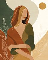 Modern abstract figuratief in aardetinten met lijntekening elementen