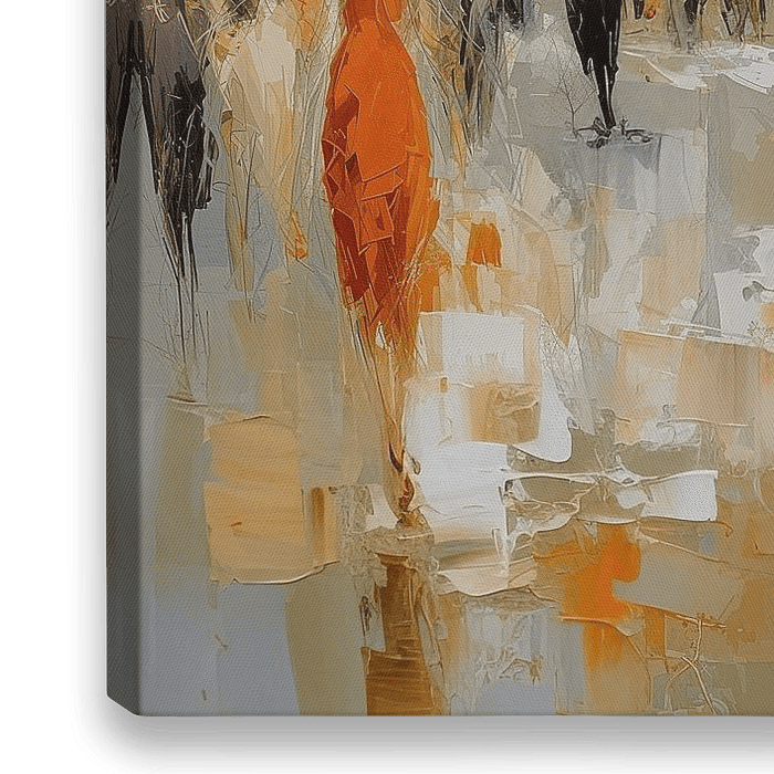 Een prachtig impressionistisch stadsgezicht schilderij met drie vrouwen die het straatbeeld verlevendigen. Geniet van de speelse penseelstreken en de gedurfde kleuren die de energie van de stad weergeven. Breng de dynamiek van het stadsleven in huis met dit unieke kunstwerk.