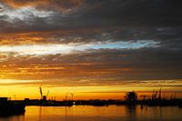 Een kijkje op de zon`s ondergang bij de houthaven in Amsterdam.