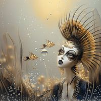 Koop dit digital art kunstwerk Sunflower Queen and the Goldfish - 1 | Abstract van Karina Brouwer als reproductie geprint op canvas, aluminium dibond, (ingelijste) fotoprint, behang en ArtFrame. Voor jou op maat geprint in Fine-Art kwaliteit.