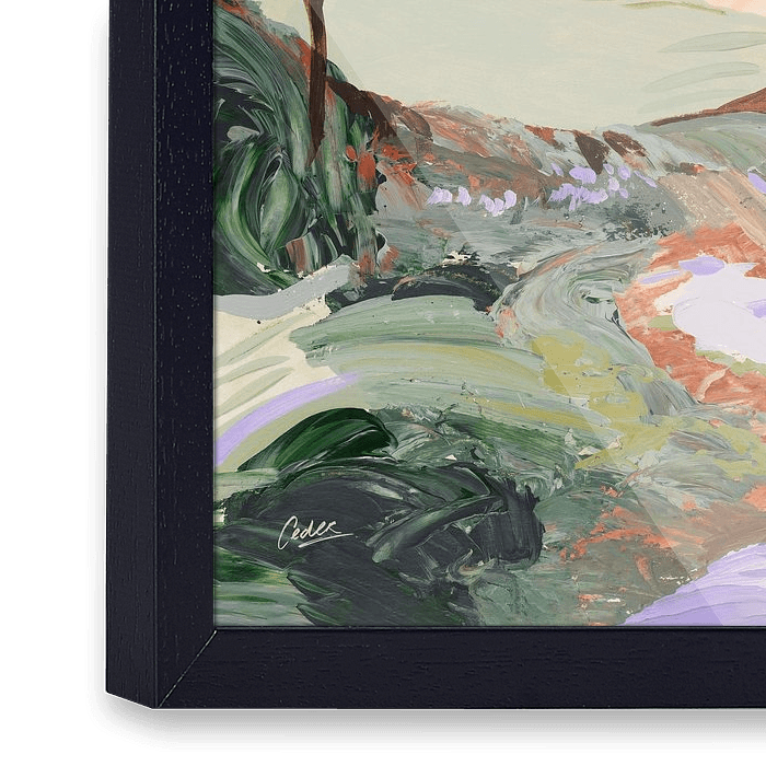 Sunkissed Mountain heeft mooie warme, aardse tinten met lila accenten. Een heel fijn kleurpalet voor een modern interieur. Handgeschilderd door Ceder Art…