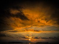 De zon komt nog net door een ga in de bewolking. Na een grijze en natte dag brak de bewolking net op tijd voor een mooie zonsondergang. Doordat er veel vocht in de lucht zat waren de zonnestralen goed te zien en kreeg de lucht een gouden kleur.