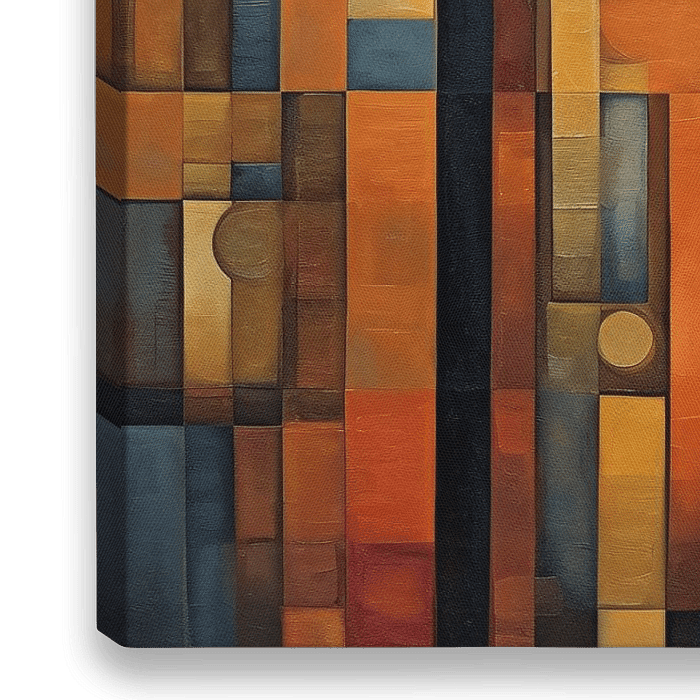 Kleurrijke abstracte zonsondergang met warme kleuren in de stijl van Paul Klee.