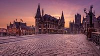Een prachtige zonsopgang bij de Sint-Michielsbrug in de prachtige Belgische stad Gent.