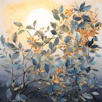 Betoverende combinatie van licht marineblauw en licht oranje goud, rust en sereniteit in een mooie harmonie tussen kleuren en compositie.