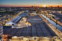 De zonsondergang in Eindhoven. Met uitzicht over het bedrijventerrein De Kade bij het Eindhovens Kanaal.