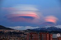 Vreemd gevormde wolken die zijn ontstaan door de hoge luchtdrukverschillen.