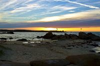Zonsondergang op het strand van Landrellec in Bretagne aan de Cote de granit rose in Frankrijk.