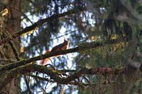 Deze eekhoorn vangt hoog in de boom de eerste zonnestralen op.