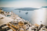 Santorini is hét eiland in Griekenland om van een mooie zonsondergang te genieten! Vanuit het dorp Fira heb je een prachtig uitzicht op de baai en de omringende eilandjes. Santorini is tegen een klif op bebouwd, wat voor mooie vergezichten zorgt.