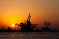 De haven van Rotterdam is best mooi als het donker wordt.