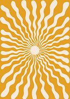 Werk met de titel: "Sunshine". Retro zon in het wit tegen een gele achtergrond. je wordt al vrolijk als je ernaar kijkt!