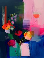 Super kleurrijk abstract stilleven met bloemen. Dit is een echte eyecatcher! Kies zelf het formaat en materiaal bij dit werk en maak het helemaal passend voor jouw interieur.