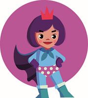 Dit meisje heeft een pakje van een superheld aan. De meid staat vol trots je aan te kijken als superheldin.