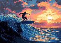 Koop dit schilderij Surf Poster Strand Zee - Pixel Art van Niklas Maximilian als reproductie geprint op canvas, aluminium dibond, (ingelijste) fotoprint, behang en ArtFrame. Voor jou op maat geprint in Fine-Art kwaliteit.