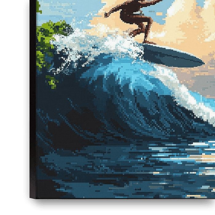 Koop dit schilderij Surf Poster Surfen Pixel Kunst van Niklas Maximilian als reproductie geprint op canvas, aluminium dibond, (ingelijste) fotoprint, behang en ArtFrame. Voor jou op maat geprint in Fine-Art kwaliteit.