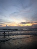 Momentopname van een vroege ochtendsurfsessie in Canggu Bali / Indonesië.