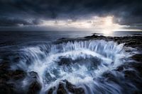 Bij vloed loopt het gat over in de rots en overstroomt het omringende kustlandschap, om onmiddellijk daarna weer in de diepe grot te verdwijnen.