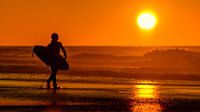 Koop de foto Surfers Sunset van M DH als print op canvas, aluminium dibond, (ingelijste) fotoprint, behang en ArtFrame. Voor jou op maat geprint in Fine-Art kwaliteit.