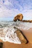 Rotsbrug in het water op het strand van Santa Cruz aan de Portugese Atlantische kust