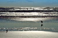 Surfers in de vroege ochtend op het strand bij St. Augustine in Florida, VS. Toen ik deze foto maakte, viel mijn oog alleen op de meeuwen in dit geweldige tegenlicht. Pas later ontdekte ik dat er surfers in het water waren.