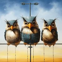 Koop dit digital art kunstwerk Surreal drie grappige vogels uilen zittend antenne van gm_designs als reproductie op canvas, aluminium dibond, (ingelijste) fotoprint, behang en ArtFrame, op maat geprint in Fine-Art kwaliteit.