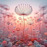 Dit is een artificial, schilderachtige en surrealistische uitvoering van deze schoonheden. De bijna dromerige subtiele sfeer komt hier goed tot uiting. De fijne kleuren van allerlei tinten roze tot rood versterken deze creatie.