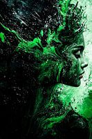 Koop dit portret Surrealistisch groen vrouwelijk portret van Art & Soul Creations op canvas, aluminium dibond, (ingelijste) fotoprint, behang en ArtFrame, op maat geprint in Fine-Art kwaliteit.