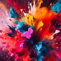 De kracht van dit kunstwerk zit hem in de dynamiek van de spetters en het speelse kleurgebruik, wat de kijker uitnodigt om steeds weer nieuwe details te ontdekken. Door de intensiteit en levendigheid van de kleuren is dit kunstwerk niet alleen een lust voor het oog, maar ook een inspirerende toevoeging aan elke kunstcollectie. Een echte must-have voor liefhebbers van moderne, kleurrijke en energieke schilderijen.