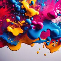 Dit kunstwerk kenmerkt zich door een explosie van levendige, opspattende verf in felle kleuren, wat zorgt voor een krachtige visuele impact. De spetters en vlekken van verf springen letterlijk van het doek af, wat een gevoel van beweging en spontaniteit creëert. Dit schilderij is gemaakt met een expressieve techniek, waarbij de kleuren niet alleen opvallen, maar ook emoties opwekken. Rood, geel, blauw en groen spatten door elkaar en lijken bijna willekeurig aangebracht, maar elk detail is zorgvuldig gekozen om een harmonieuze balans te creëren. Dit abstracte kunstwerk past perfect in moderne interieurs en trekt direct de aandacht als blikvanger in elke ruimte.