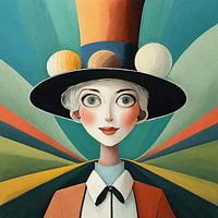Moderne impressie van een meisje met een hoge hoed.