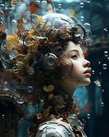 Surrealistisch portret "Outta space". Geïnspireerd op het liedje Outta space van the Prodigy, waarvan de eerste zin is: "I'll take your brain to another dimension". Een bijzonder werk, waar je niet op uitgekeken raakt.
