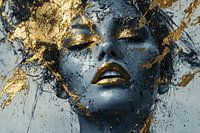 Dit indrukwekkende kunstwerk toont een surrealistisch portret van een vrouw, waarbij een combinatie van donkere en gouden tinten voor een dramatisch effect zorgt. Het gezicht van de vrouw is gedetailleerd geschilderd, met een mix van abstracte en realistische elementen die samen een mysterieus geheel vormen. De gouden accenten over haar gezicht versterken het contrast en geven het een luxueuze uitstraling. Deze unieke stijl maakt het een opvallend decorstuk voor moderne interieurs. Perfect voor in de slaapkamer, kantoor of een andere ruimte waar je een artistiek en gedurfd statement wilt maken.