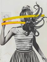 Surrealistisch vrouwenportret met octopus in haar hoofd
