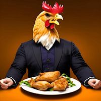 Surrealistische kip eet kip, gemaakt in fotoshop