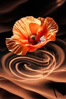 Deze opvallende afbeelding toont een surrealistische weergave van een klaproos, stralend in levendig oranje en prachtig geaccentueerd door een achtergrond van golvend zand. Het samenspel van kleuren en vormen creëert een dynamische en moderne uitstraling, perfect voor wie een uniek kunstwerk zoekt om een ruimte te verfraaien. Dit ontwerp brengt elegantie en energie in elke omgeving en is geschikt voor zowel minimalistische als creatieve interieurs. Het subtiele spel van licht en schaduw voegt diepte toe, waardoor het een ware blikvanger wordt.