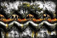 Breng een vleugje unieke en opvallende kunst in uw interieur met dit indrukwekkende ontwerp. Het combineert realistische elementen zoals olifanten en bomen met een surrealistische twist, waardoor het een echte blikvanger is in elke ruimte. De speelse combinatie van kleuren, texturen en abstracte patronen maakt dit kunstwerk perfect voor liefhebbers van eigentijdse en eclectische stijlen. Het ontwerp is ideaal om een gedurfde en creatieve sfeer toe te voegen aan uw woonkamer, hal of kantoorruimte. Geef uw interieur een kunstzinnige upgrade met deze unieke wanddecoratie.