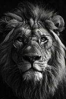 Koop dit leeuwen kunstwerk Surrealistische portret van de leeuw met bril van Digitale Schilderijen op canvas, aluminium dibond, (ingelijste) fotoprint, behang en ArtFrame, op maat geprint in Fine-Art kwaliteit.