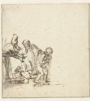 pen en bruine inkt, met witte dekverf; latere toevoegingen met penseel in grijs; kaderlijnen in bruine inkt, h 201mm × b 188mm Catalogus entry