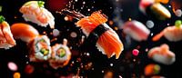 Sushikunst tijdens de vlucht - kleurrijke compositie van Poster Art Shop
