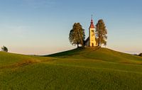 In het landschap van Slovenië zijn vele mooie pittoreske kerkjes te vinden, vaak eenzaam gelegen op een bergrug of in een dal. Dit kerkje; Sveti Thomas in Gorenj is te vinden in het westelijk deel van Slovenië. Het is gefotografeerd bij ondergaande zon.