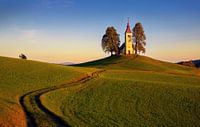 In het landschap van Slovenië zijn vele mooie pittoreske kerkjes te vinden, vaak eenzaam gelegen op een bergrug of in een dal. Dit kerkje; Sveti Thomas in Gorenj is te vinden in het westelijk deel van Slovenië. Het is gefotografeerd bij ondergaande zon.